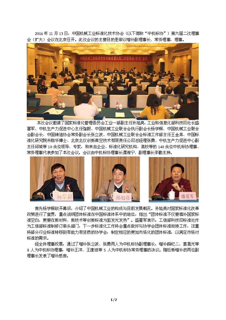 中國機(jī)械工業(yè)標(biāo)準(zhǔn)化技術(shù)協(xié)會第六屆二次理事會(擴(kuò)大)會議召開